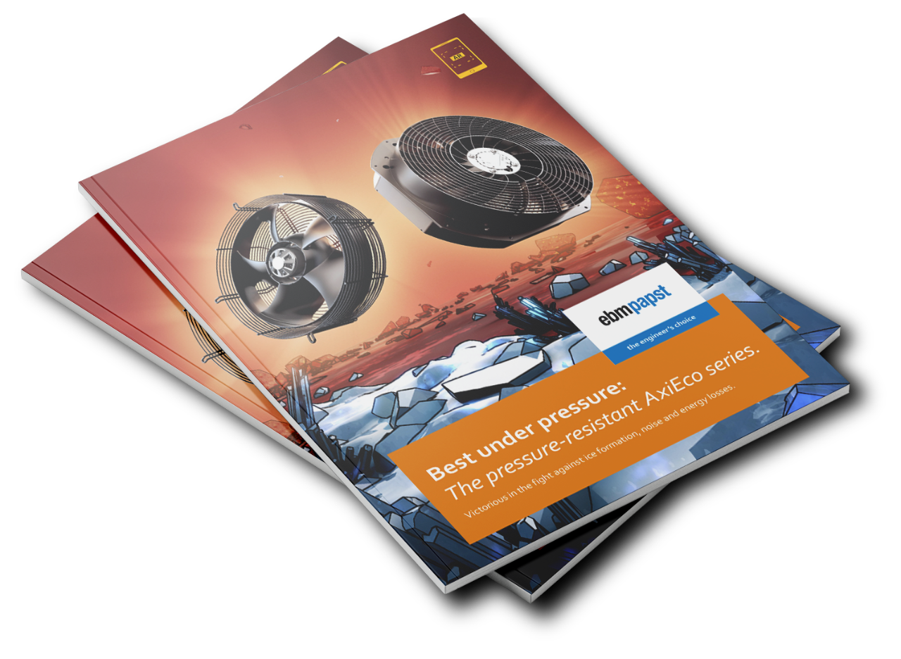 For the AxiEco Plug-In, we have further developed the proven series so that it has been optimized once again specifically for use in heat pumps. It is characterized by a pressure-stable characteristic curve, robustness against environmental influences and low noise levels.